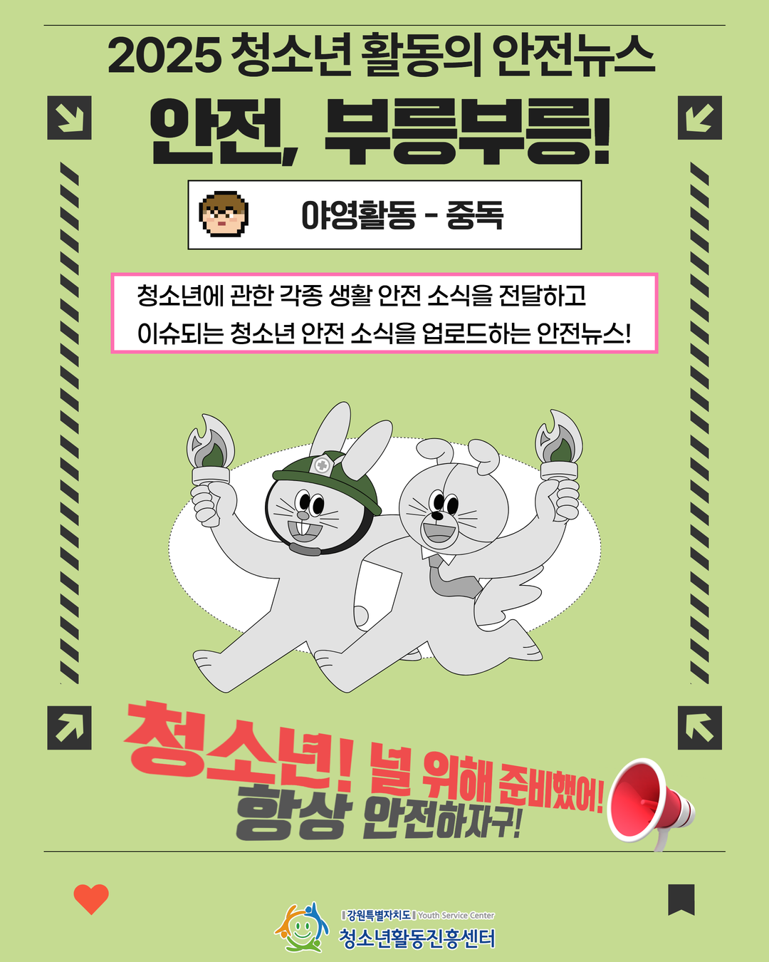 | 제목 | [안전,부릉부릉!] 🏕️ 야영의 불빛은 따뜻하지만, 중독의 위험은 보이지 않아요. | ||||