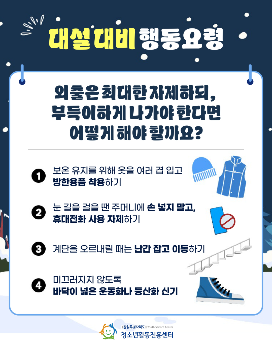 | 제목 | [안전해주세요] 대설대비 안전정보! | ||||
