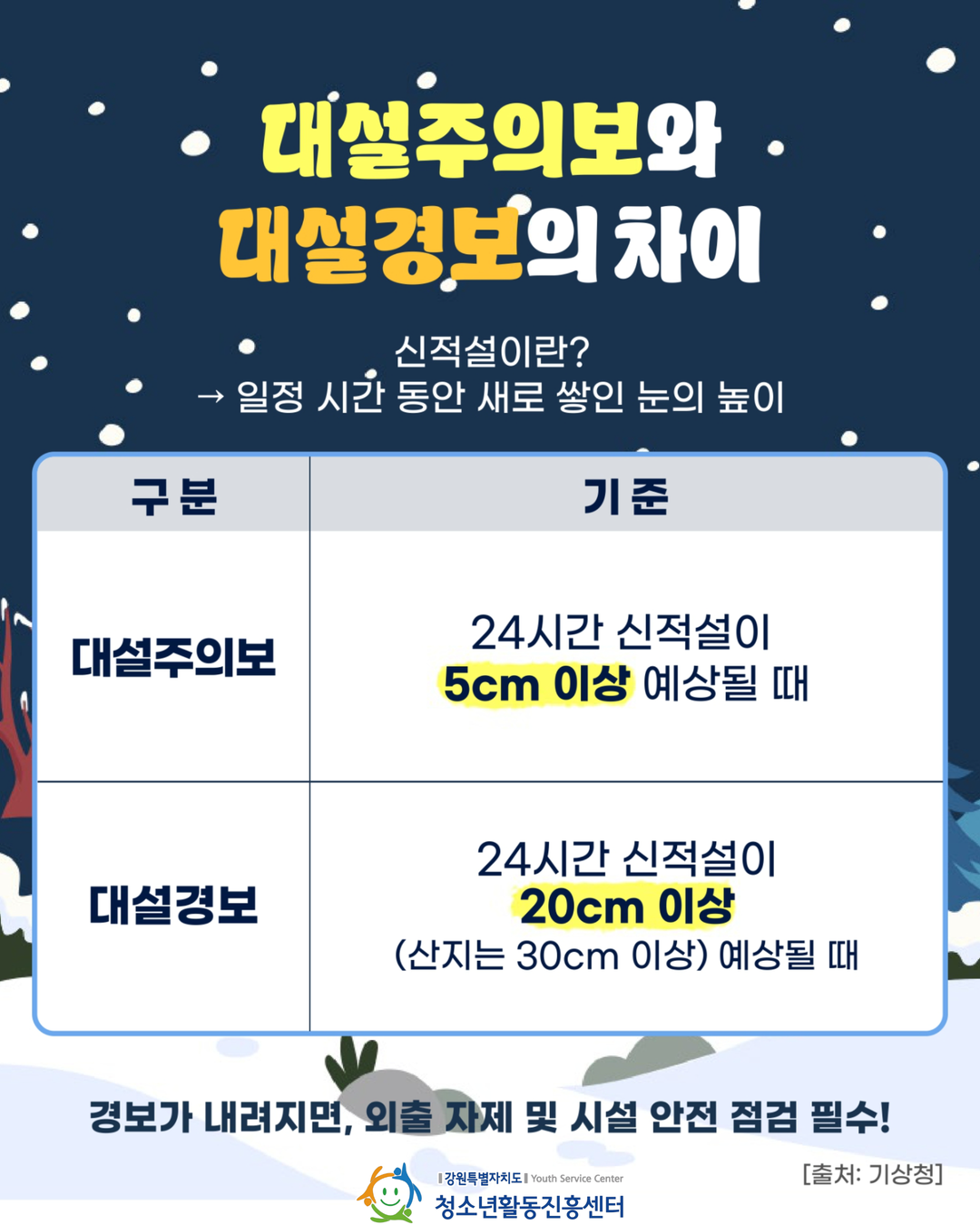 경보: 24시간 20cm 이상 (산지 30cm 이상)
