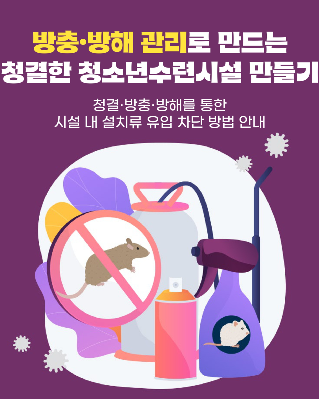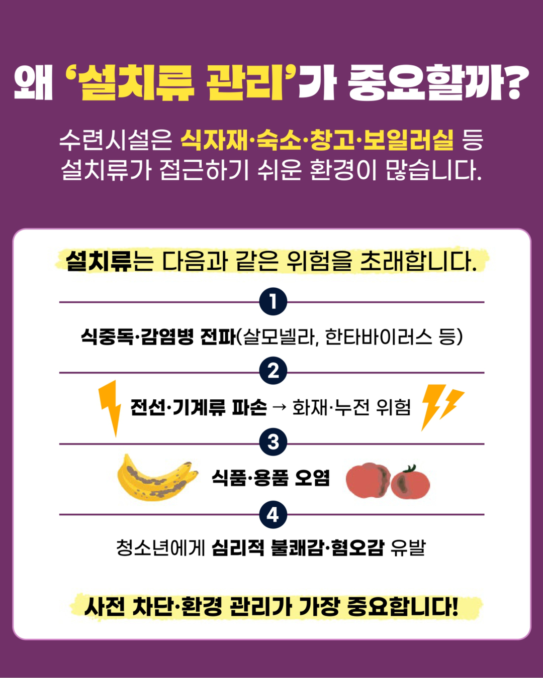 식중독 및 감염병(한타바이러스 등) 예방, 화재 위험 방지, 쾌적한 심리적 환경 조성!