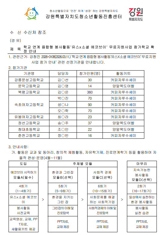 [공문]학교 연계 융합형 봉사활동 ‘유스X소셜 에코브이’ 무료지원사업 참가학교 확정 안내.pdf