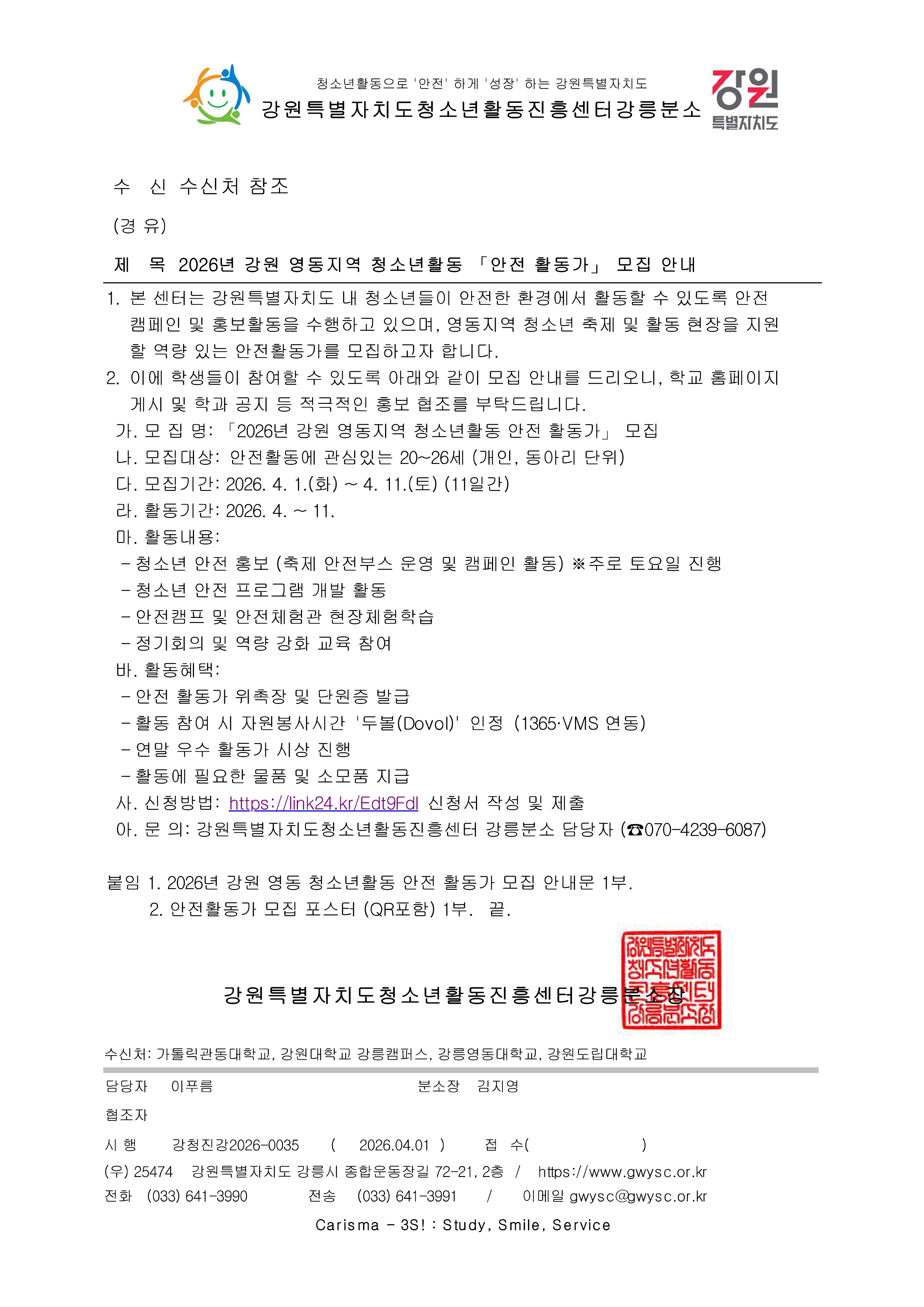 [공문] 2026년 강원 영동지역 청소년활동 안전활동가 모집 안내_page-0001.jpg