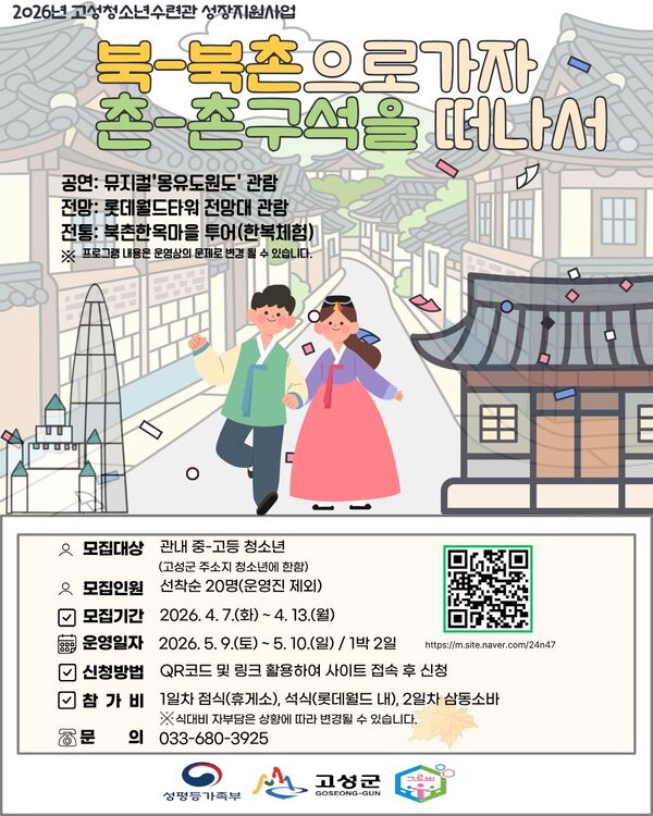 ❍ 문 의 : 고성청소년수련관(☎033-680-4233)