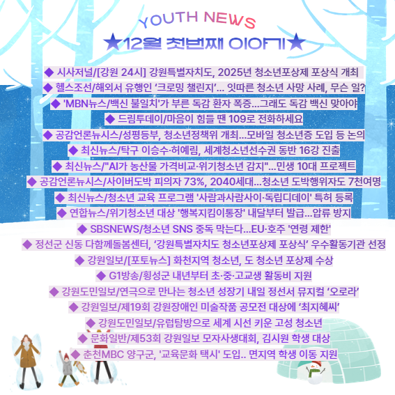 | 제목 | ★12월 첫 번째 Youth News★ | ||||