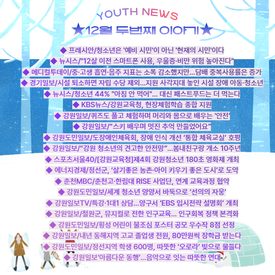 | 제목 | ★12월 두 번째 Youth News★ | ||||