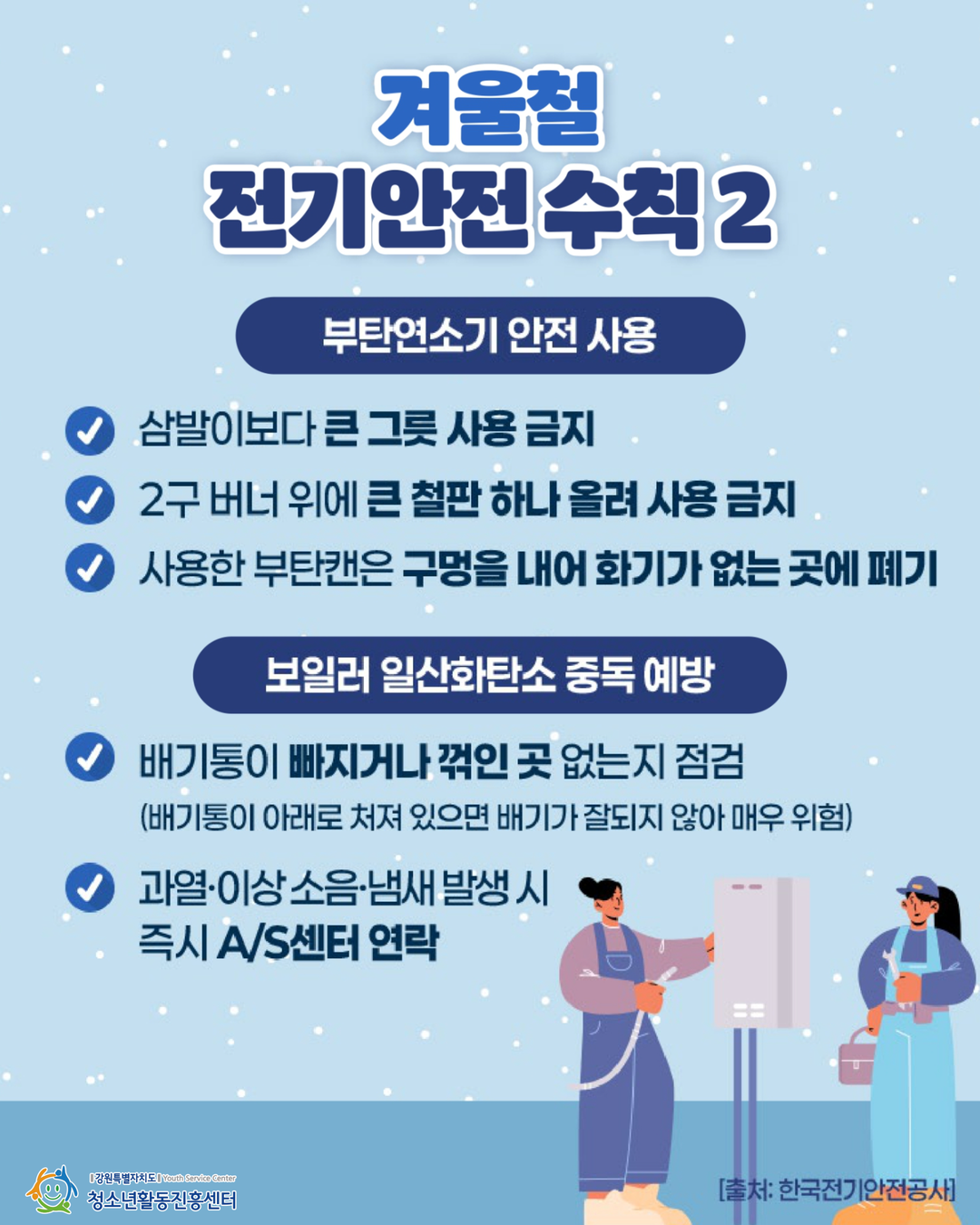 따뜻한 방 안에서 전기·가스 사고가 나지 않도록
