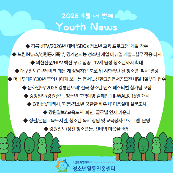 | 제목 | ★ 4월 네 번째 Youth News ★ | ||||