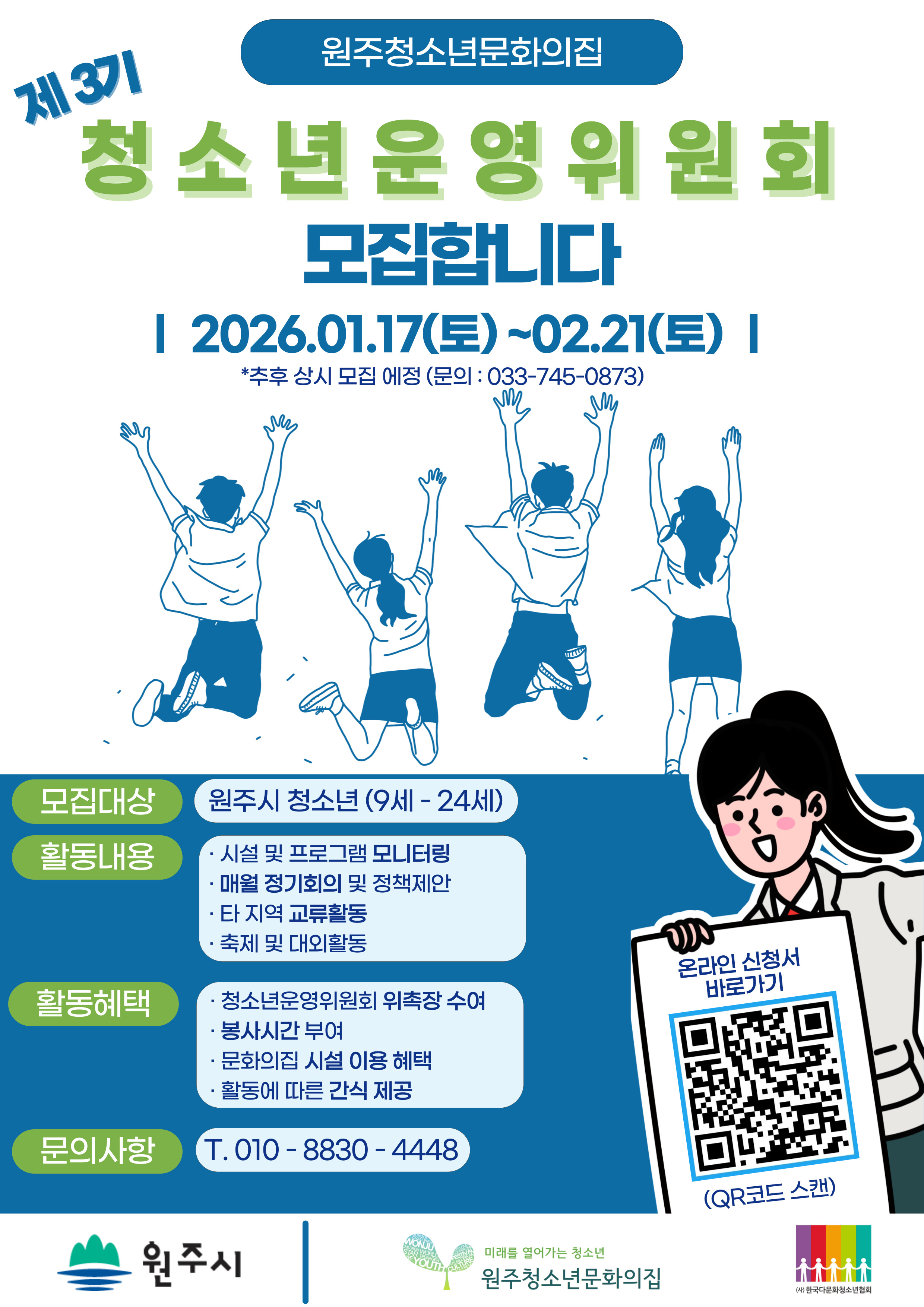 | 제목 | [모집홍보] 2026년 원주청소년문화의집 청소년운영위원회 모집 | ||||