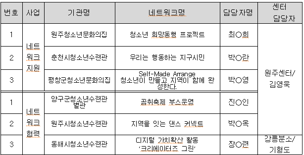 파일명: 청소년활동 네트워크 구축 결과보고_기관명(gwysc@gwysc.or.kr)