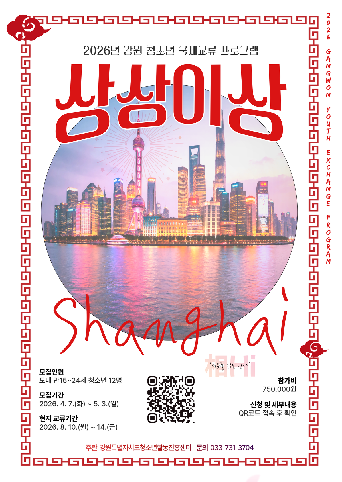 2026년 강원 청소년 국제교류 프로그램 '상상 이상, 상하이(相Hi)' 참가자 모집 안내