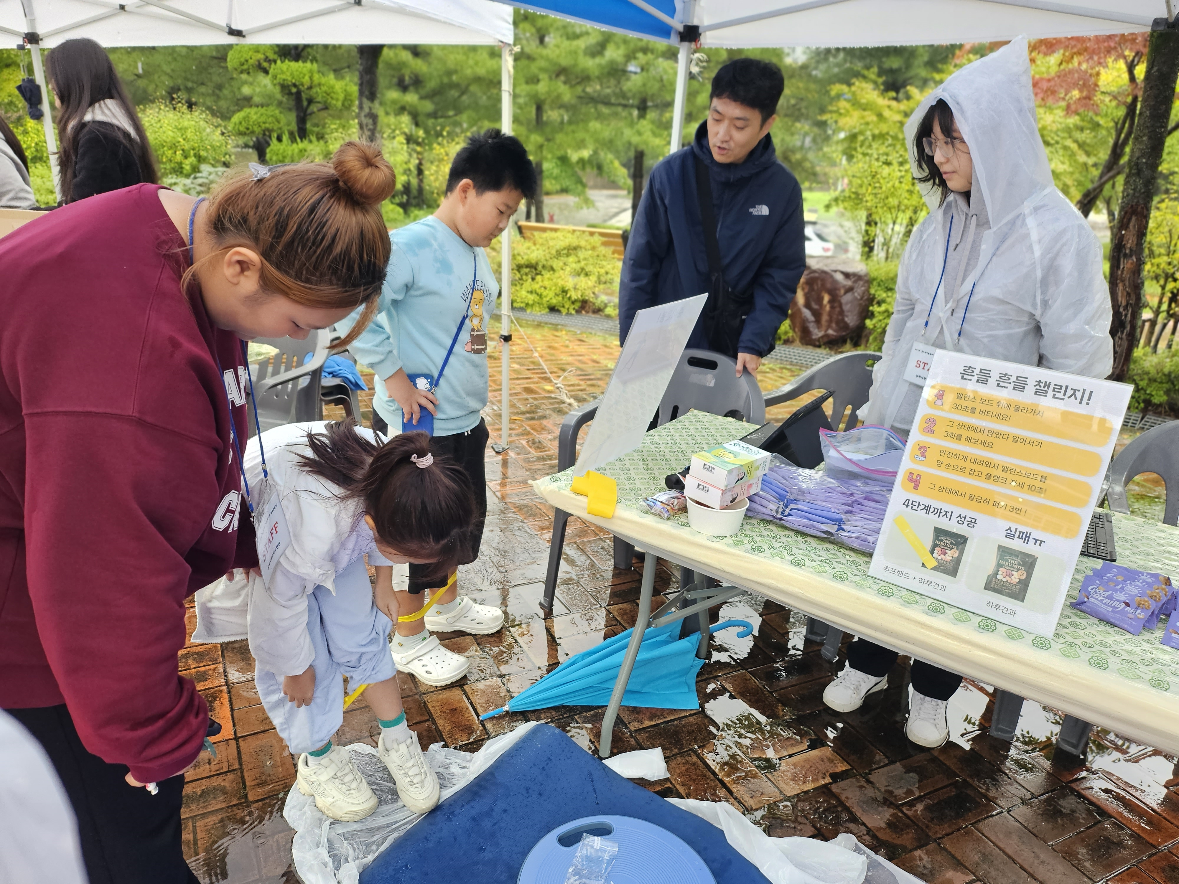 강릉분소는 삼척시 청소년 어울림마당에서 '흔들흔들 챌린지' 프로그램으로 부스 운영을 지원하였습니다. 이번 프로그램은 밸런스보드를 활용해 균형을 잡는 게임 형식으로 진행되었으며, 청소년들의 참여 열기가 뜨거웠습니다. 참가자들은 제한된 시간 동안 보드 위에서 자세를 유지하며 자신의 균형 감각을 시험했습니다. 성공한 참가자에게는 하루견과와 고무밴드가 증정되어 현장의 흥미를 더했습니다. 비가 많이 와서 아쉬웠지만 청소년들의 즐거운 체험의 장이 되었습니다.